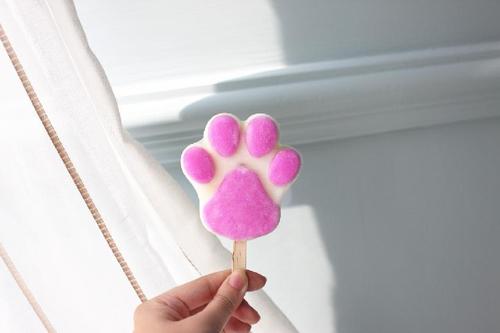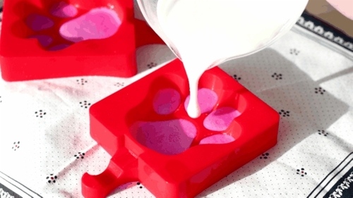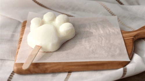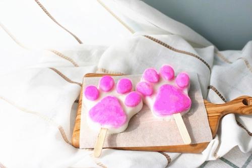 然后再将剩余的白色酸奶填入2个模具中,接着冷冻至少4小时定型。注意肉垫定型的时候,白色酸奶也要放在冷藏保存哦。
