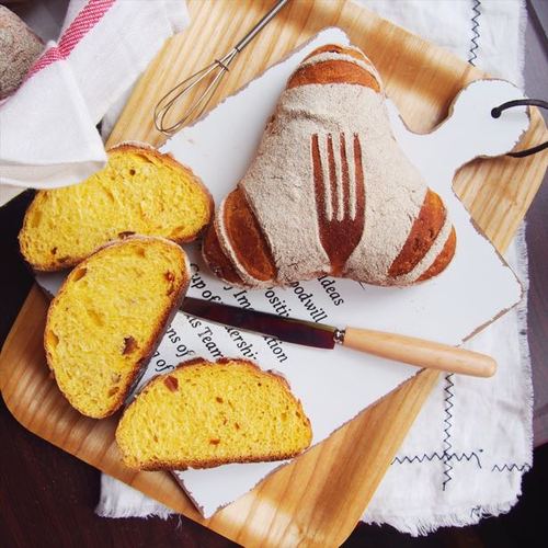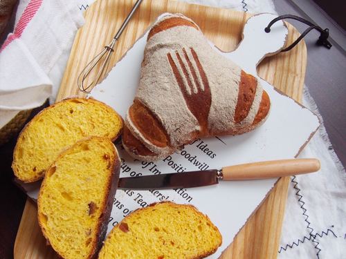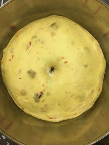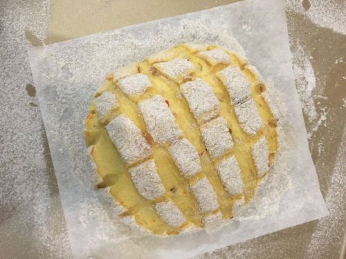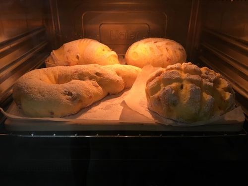 烘烤结束,取出面包晾凉.切开后,是金黄色的.还自带一股酒味.香喷喷的.