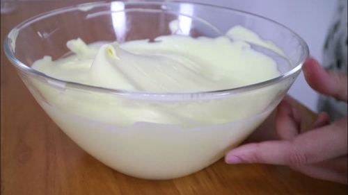 先将植物油与酸奶混合均匀,要注意酸奶不要用太稀的,要稍微浓稠些的;