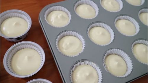 在混合均匀的面糊里加入百香果汁,百香果汁要滤去籽,混合均匀;