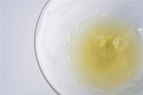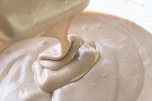 牛奶分两次加入,蛋黄液同样分两次加入;每次加入液体后,都要确保搅拌均匀后再继续加入,很容易混合均匀,完成的蛋黄糊应该是具有一定流动性的面糊;