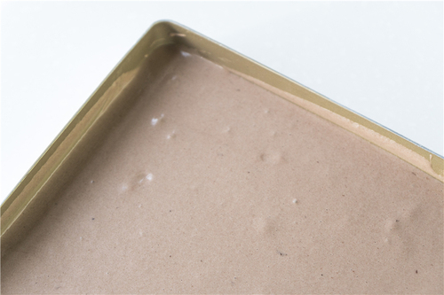 拌好的面糊富有光泽和弹性,滴落后会留下痕迹;接着将面糊从高处倒入盘中,用刮板抹平,放入提前预热好的烤箱中层烘烤18分钟左右;