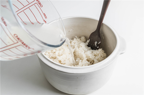 3、糯米一定不能烫的时候就倒入酒曲水,会把酒曲烫死,务必等其降温到合适的热度;