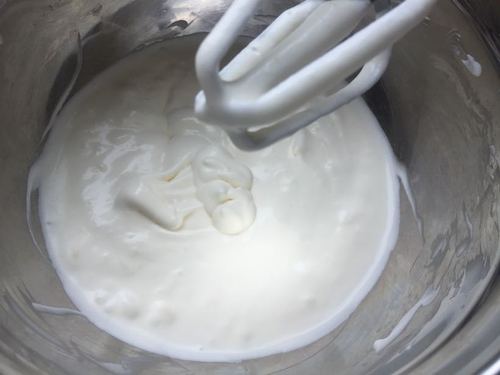 先去三分之一的淡奶油与吉利丁液混合均匀,然后倒入剩下的淡奶油充分混合(原谅我忘记拍图了)