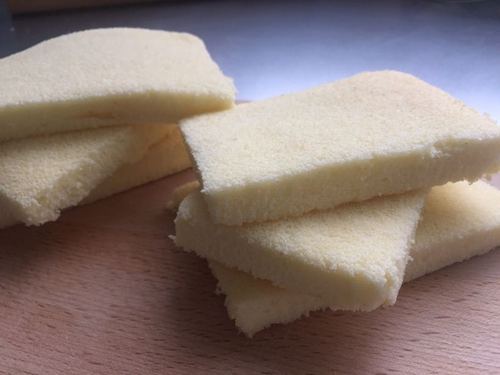蛋糕胚就是很普通的,大家找个方子照着做就可以了,根据容器的大小切片。