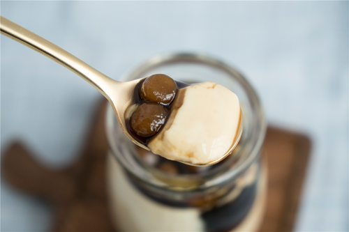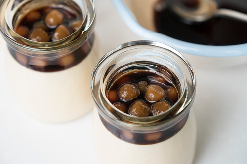 焖好的布丁取出,倒入裹了黑糖浆的粉圆就可以吃啦~热吃冷吃都很适合哦!
