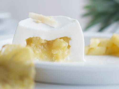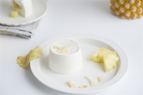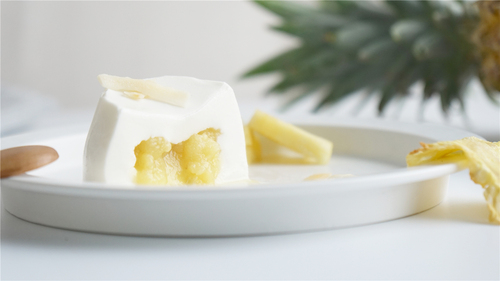 3、菠萝必须煮熟,不然菠萝中的蛋白酶会影响椰子慕斯中吉利丁的凝固能力。