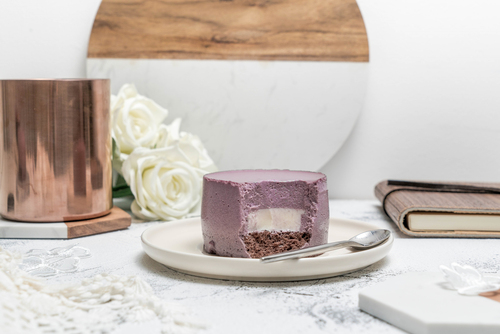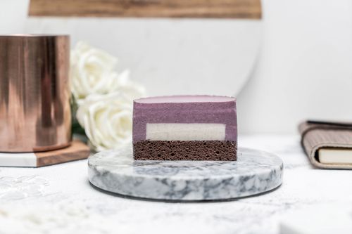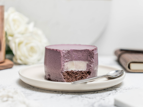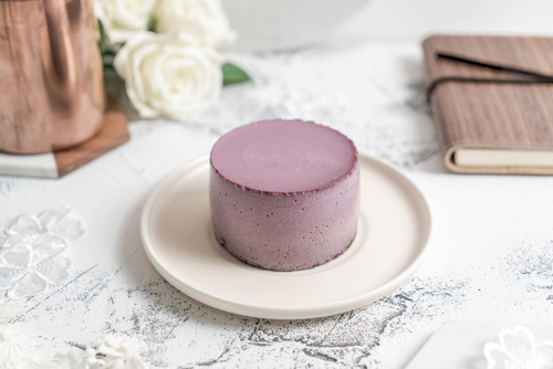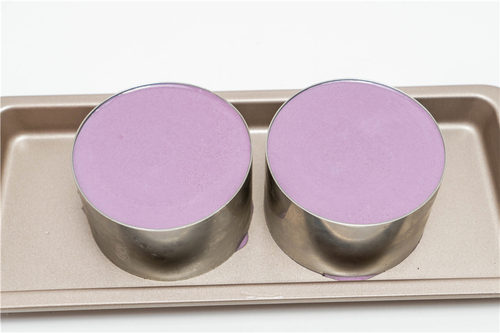 把紫薯慕斯液倒入之前的奶冻之上,放入冰箱冷藏4小时以上凝固即可;用电风吹或热毛巾就能脱模,可以开始次啦!