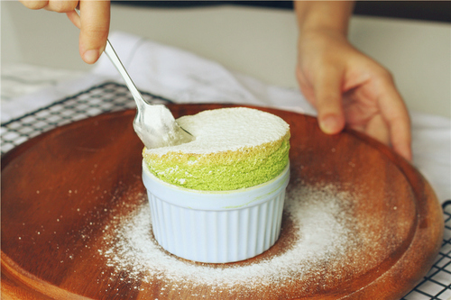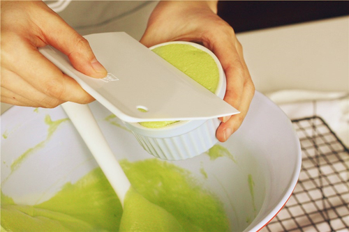 再用食指沿着碗边的面糊溜一圈,动作要连贯小心;这样做可以让舒芙蕾涨的更高哟。