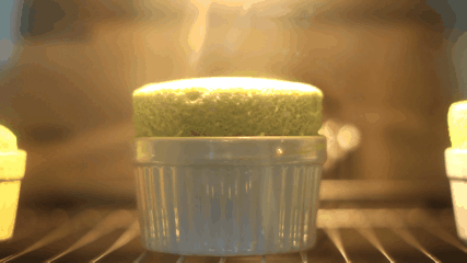 将烤碗放入烤箱的中层或者中下层,烤12分钟左右,直到表面呈金黄色;中途不要开烤箱门,不然塌了你们不要怪我。
