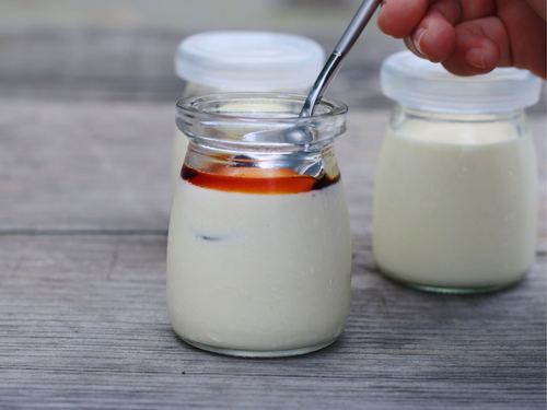 将变稠的蛋奶糊与淡奶油混合均匀 装瓶冷藏3小时以上 (参考:一瓶80g)