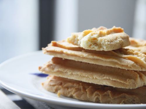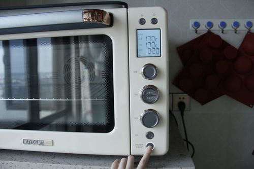将烤盘放入烤箱中层,按下开始键,烘烤完成后,取出烤盘,冷却后放入冰箱中冷藏半个小时后取出即可食用。因为刚出炉的曲奇很酥,需要冷藏后再拿出来,否则很容易碎裂;