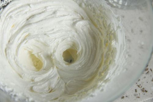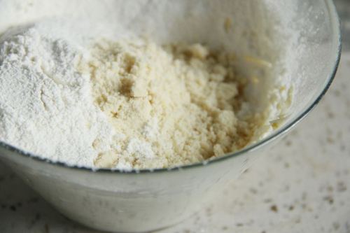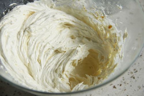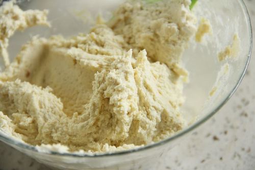 将糖粉,白砂糖加入软化的黄油中,隔着冰水,用电动打蛋器打发至发白状态。夏天室温过高黄油容易在搅打过程中融化,最好隔着冰水打发;